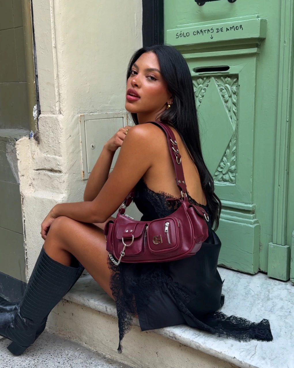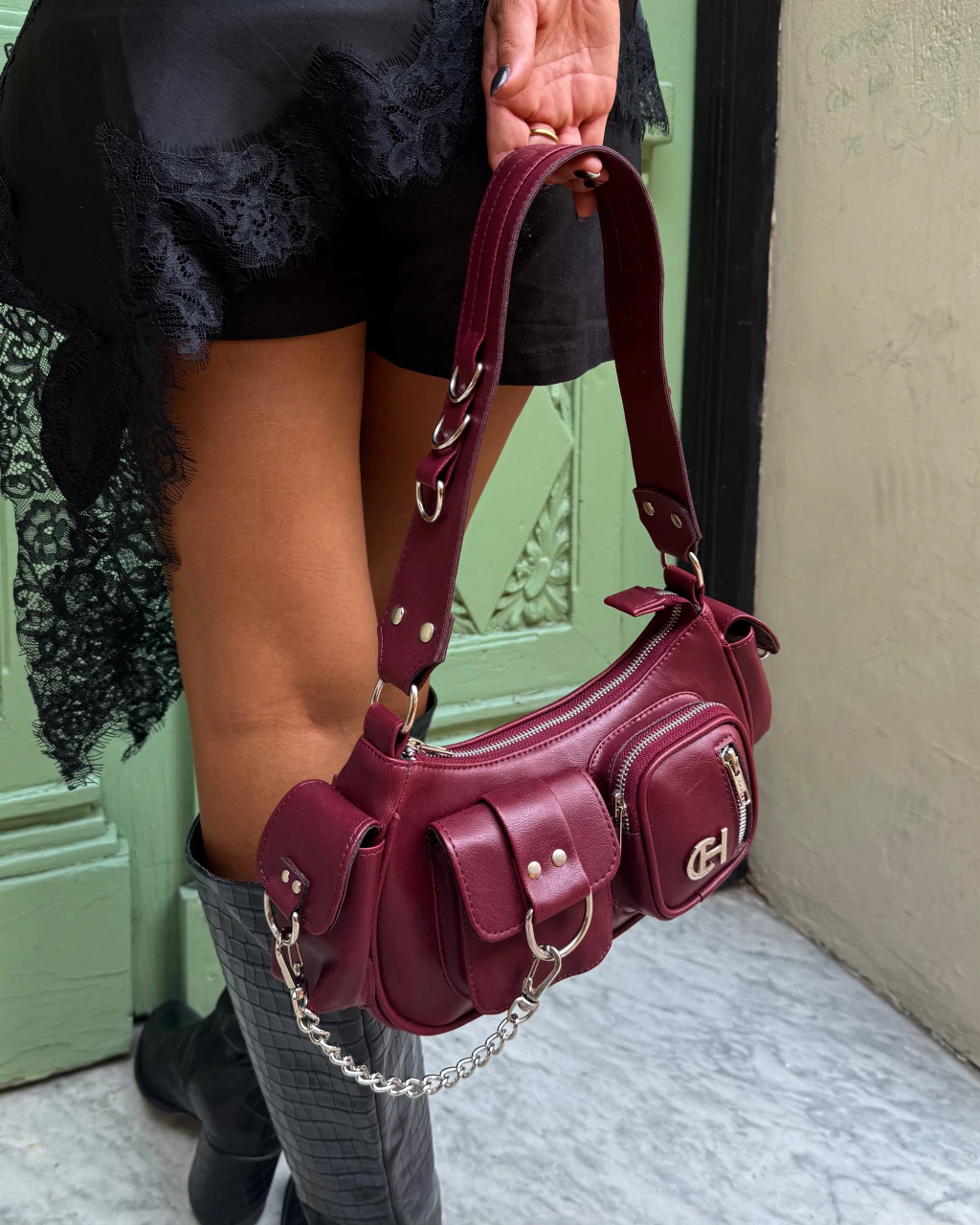 Materiales: Cuero PU premium importado! Bag estilo Cargo con 5 bolsillos externos (2 con cierre, 3 con cierre inmantado) y 1 bolsillos interno! Utilizamos Cierres YKK que duran para toda la vida🫶🏼 Herrajes y Avios de acero inoxidable. Cadena desmontable. Chapa de acero inoxidable. Forrada por dentro con bolsillo interno!