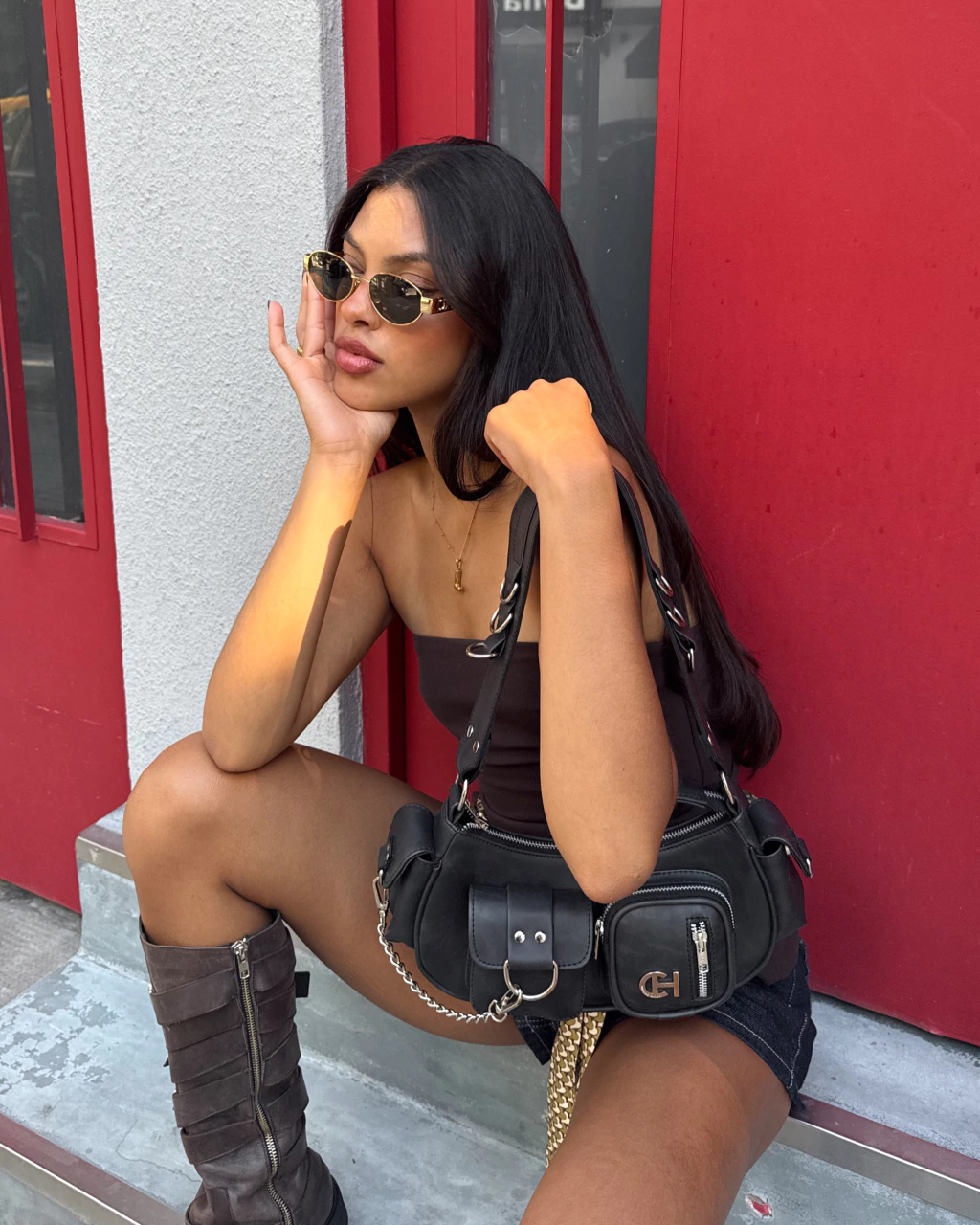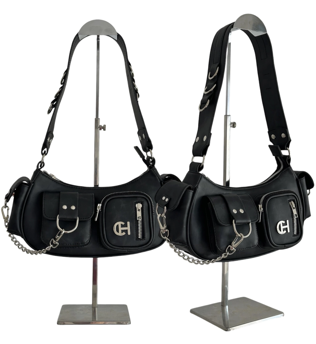 Materiales: Cuero PU premium importado! Bag estilo Cargo con 5 bolsillos externos (2 con cierre, 3 con cierre inmantado) y 1 bolsillos interno! Utilizamos Cierres YKK que duran para toda la vida🫶🏼 Herrajes y Avios de acero inoxidable. Cadena desmontable. Chapa de acero inoxidable. Forrada por dentro con bolsillo interno!